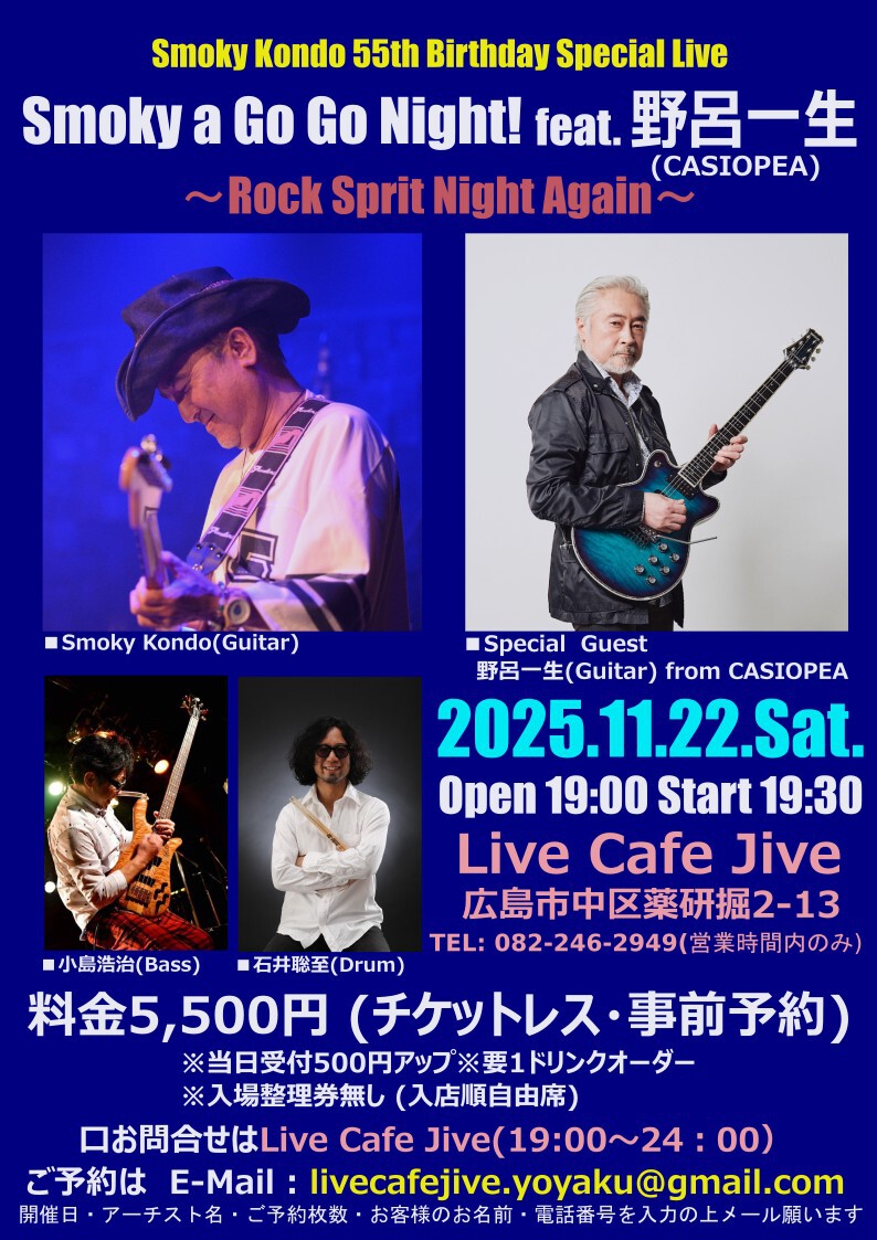 広島 Live cafe Jive info.082-246-2949 (19時~24時)